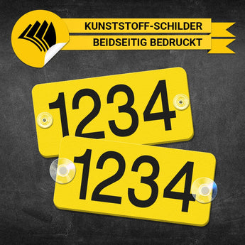 Schild "gelbe Ordnungsnummer" für Taxi. Beidseitig bedruckt und ausschließlich für die Anbringung von Innen an die Heckscheibe geeignet. Jetzt Ordnungsnummern Taxi günstig bestellen.