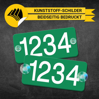 Dieses Schild ist beidseitig mit Folienziffern versehen. Das Schild eignet sich ausschließlich für die Anbringung von Innen an die Heckscheibe. Ihre Konzessionsnummer ist damit von Außen und von Innen sichtbar, vorausgesetzt, die Scheibe ist nicht getönt. Das Schild enthält bei Lieferung zwei Saugnäpfe, welche an der Innenseite der Heckscheibe des Fahrzeuges angebracht werden. Ermöglicht ein einfaches Anbringen und Abnehmen für Fahrzeuge im wechselnden Taxibetrieb. Achten Sie vor der Anbringung darauf, dass sich keine Schmutzrückstände auf der Fläche befinden.*